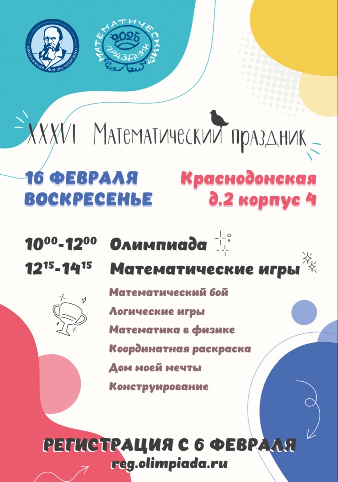 Приглашаем учеников 6 и 7 классов на Математический праздник 16 февраля.