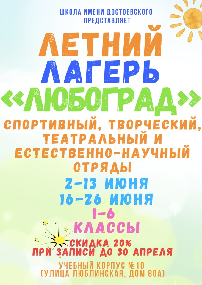 Приглашаем учеников 1-6 классов на летние смены школьного лагеря «ЛюбоГрад».