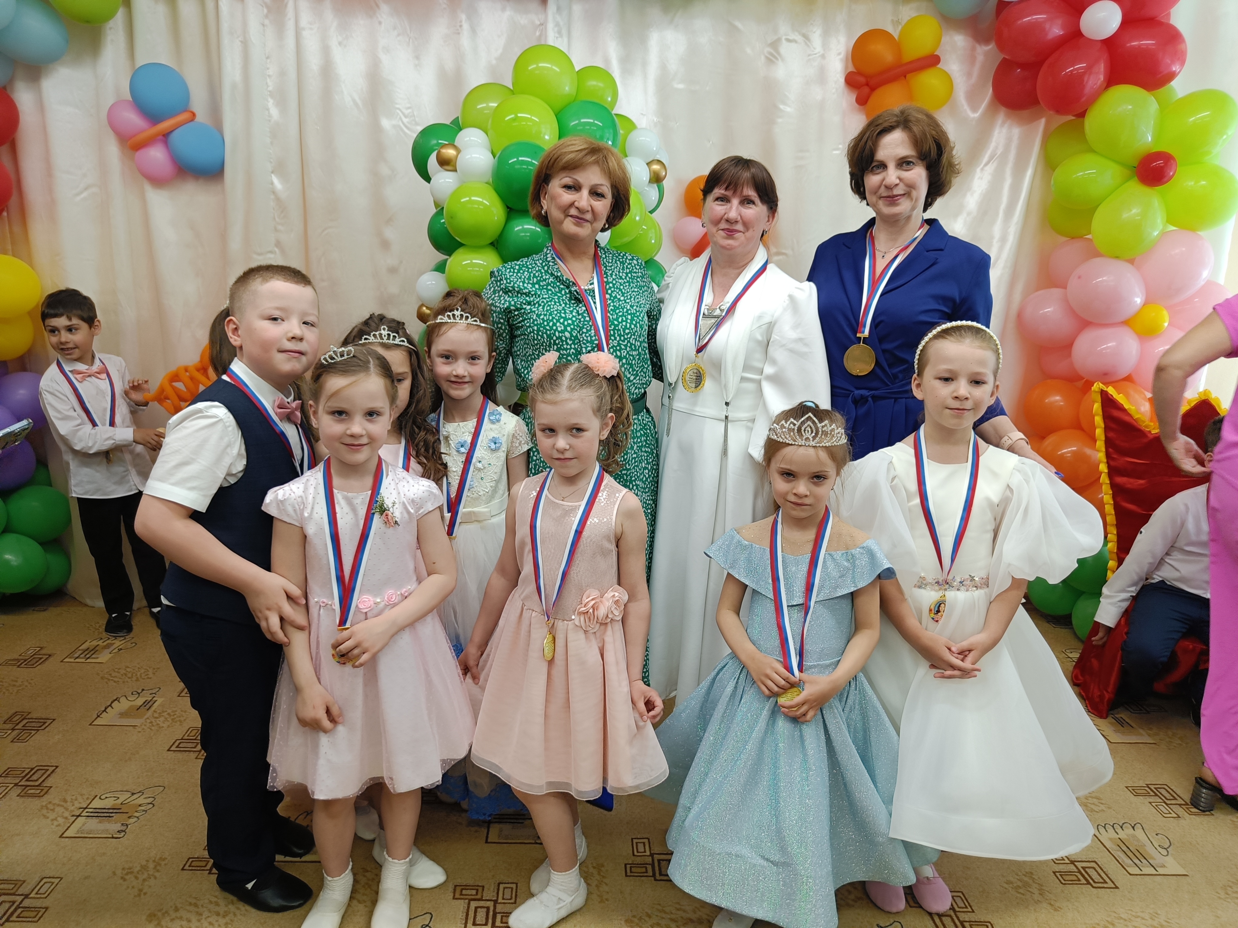 В коллективе есть прекрасный музыкальный работник – Ольга Ильинична Денисюк. Думаю, что в большей степени, она является организатором потрясающих праздников. Также Ольга Ильинична часто сама шьет костюмы для детей и делает декорации. Розу Сергеевну Хадынову хотелось бы поблагодарить за проведение Зимних олимпийских игр (Непоседы, кстати, вышли победителями в этом мероприятии).